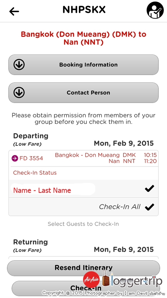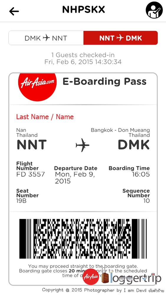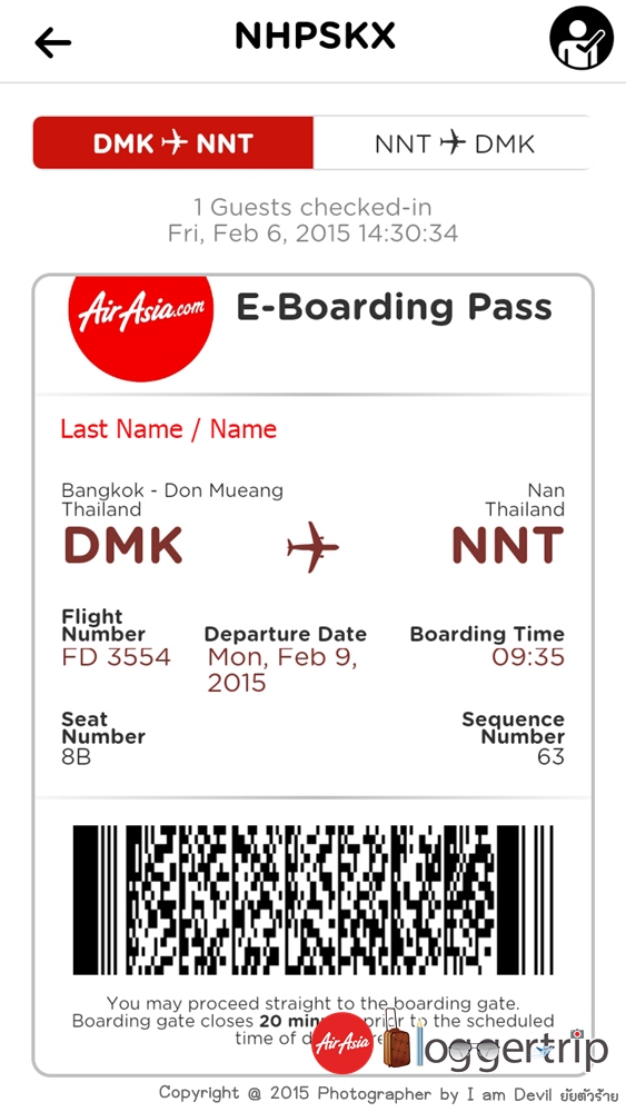 และได้ E-Boarding Pass ขากลับ น่าน (NNT) – กรุงเทพฯ – ดอนเมือง (DMK)